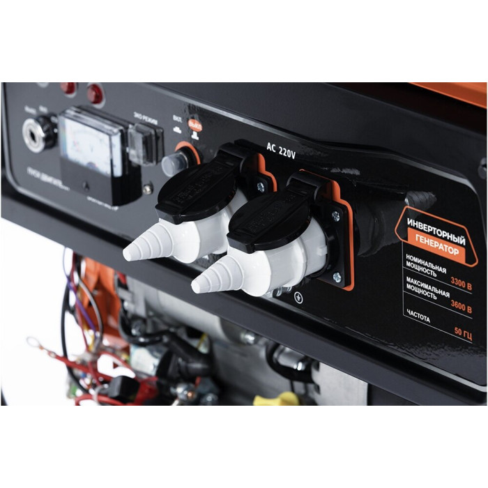 тип: бензиновый, номинальная мощность: 3500 Вт, максимальная мощность: 3800 Вт, запуск: электрический, вес: 45 кг, тип охлаждения: воздушное, уровень шума: 72 дБ, время непрерывной работы: 10 ч, Число розеток 220 В: 2, автономность: 10 ч, особенности: инверторный генератор, функции: защита от перегрузок