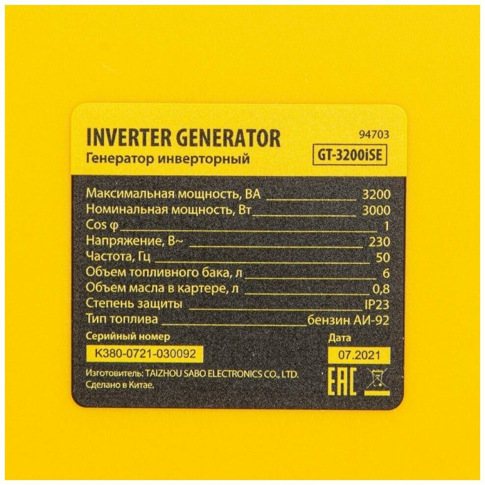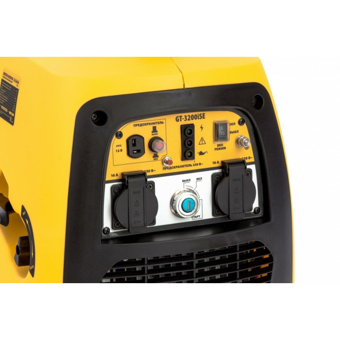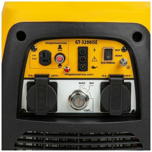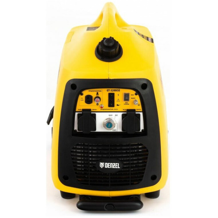 Генератор Denzel GT-3200iSE - легкий, компактный и экономичный, но при этом достаточно мощный, чтобы выдавать максимальную мощность 3200 Вт. Отлично подходит для использования на даче, на природе,в гараже или торговой палатке. Главное его преимущество - это высокое качество тока, поэтому такой генератор часто используется для питания чувствительной техники. Например, дорогой электроники, газовых котлов с электронным управлением, охранных и пожарных систем. Электронная система зажигания и электронный регулятор оборотов двигателя позволяет экономить топливо до 40% и более в сравнении с расходом классического бензинового генератора. Встроенная защита от перегрузки и короткого замыкания делает его надежным и долговечным. Преимущества: Комфортная работа: Низкий уровень шума - 60 Дб/ Колеса и выдвижная ручка позволяют легко перемещать его одной рукой. Оснащен электростартером,для запуска достаточно просто повернуть ключ. Индикатор короткого замыкания,перегрузки и недостаточного уровня масла позволяют легко отслеживать процесс работы.2 розетки 230В на передней панели позволяют подключать одновременно пару потребителей без использования удлинителя. Надежность: Встроенная защита от короткого замыкания и перегрузки принудительно отключает генератор не допуская поломки. Медная обмотка альтернатора увеличивает долговечность аппарата. Пластиковый противоударный корпус защитит от повреждений. При низком уровне масла встроенная защита автоматически отключит генератор.