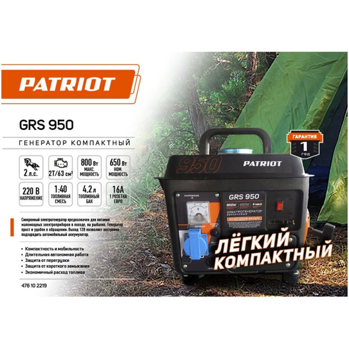 Переносной компактный генератор предназначен для питания маломощных электроприборов на загородном участке, в походе, на рыбалке. 2-х тактный двигатель прост и удобен в обращении при транспортировке. Синхронный электрогенератор обеспечивает длительную надежную работу. Выход 12 вольт позволяет подзарядить автомобильный аккумулятор в экстренном случае.