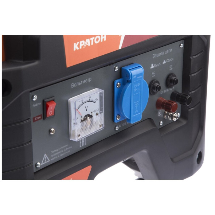 система стабилизации напряжения AVR; комплектация: кабель с зажимами для зарядки аккумулятора, ключ свечной, отвертка, ручка, крепежные изделия для крепления ручки 2 винта и 2 шайбы, вилка электрическая 220 В, 16 А, инструкция по эксплуатации