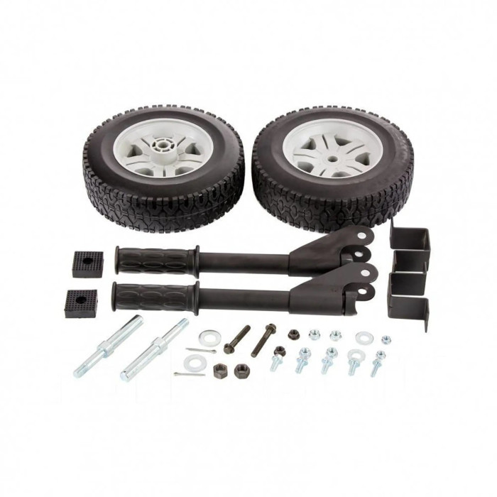 Ручка - 2 шт, Колесо - 2 шт, Опора - 2 шт, Ось - 1 шт, Скоба крепления оси - 1 шт, Болт с фланцем М8 - 2 шт, Малый болт с фланцем М8 - 8 шт, Гайка с фланцем М8 - 10 шт, Шайба - 4 шт, Шплинт - 2 шт