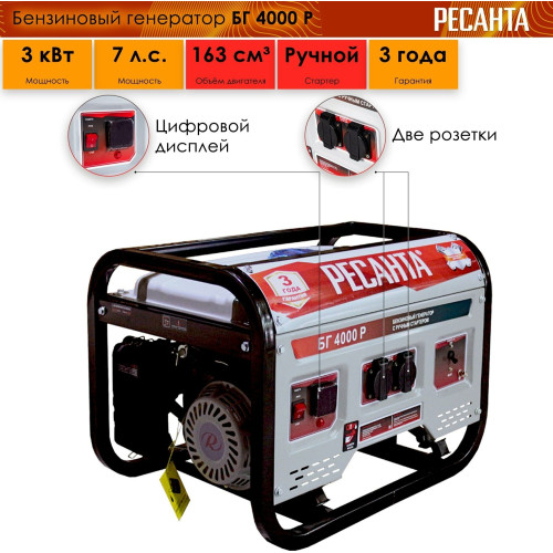 Электрогенератор Ресанта БГ 4000 Р 64/1/44 применяется для резервного питания бытовых приборов в случае аварийной ситуации. Агрегат оснащен четким цифровым дисплеем, который отображает основные параметры работы. Есть 2 розетки 16А с пластиковыми защитными крышками. Генератор данной модели предназначен для использования в небольших магазинах, ларьках, а также в гараже, на даче.
