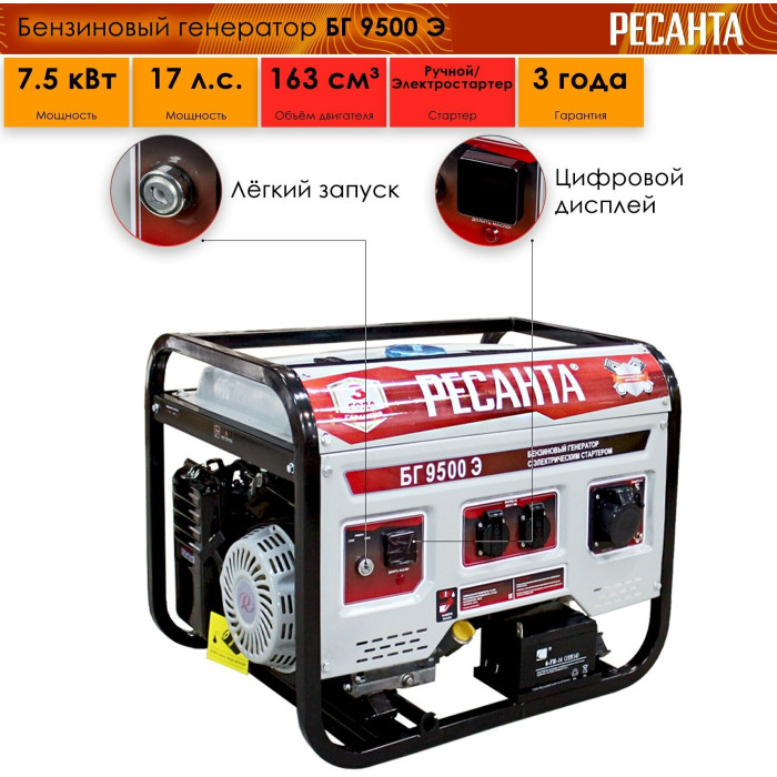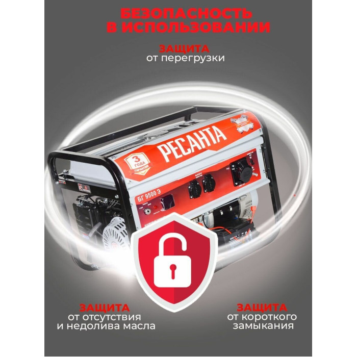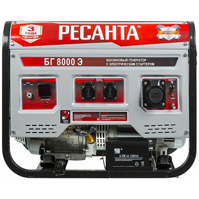 Электрогенератор (бензогенератор) - электрическая машина, предназначенная для автономного электроснабжения. В качестве первичного двигателя используется четырёхтактный карбюраторный двигатель, топливом для которого является неэтилированный бензин.Электрогенератор предназначен для получения электроэнергии в тех местах, где отсутствует магистральное электроснабжение. Это касается, как частных домов, где генераторы могут использоваться в качестве резервного источника питания, так и различных участков работ, где нужно электропитание для оборудования и проведения работ. Электрогенераторы РЕСАНТА обладают повышенным ресурсом и имеют гарантию 3 года. Генераторы отличаются высоким качеством, надёжностью и оснащённостью.