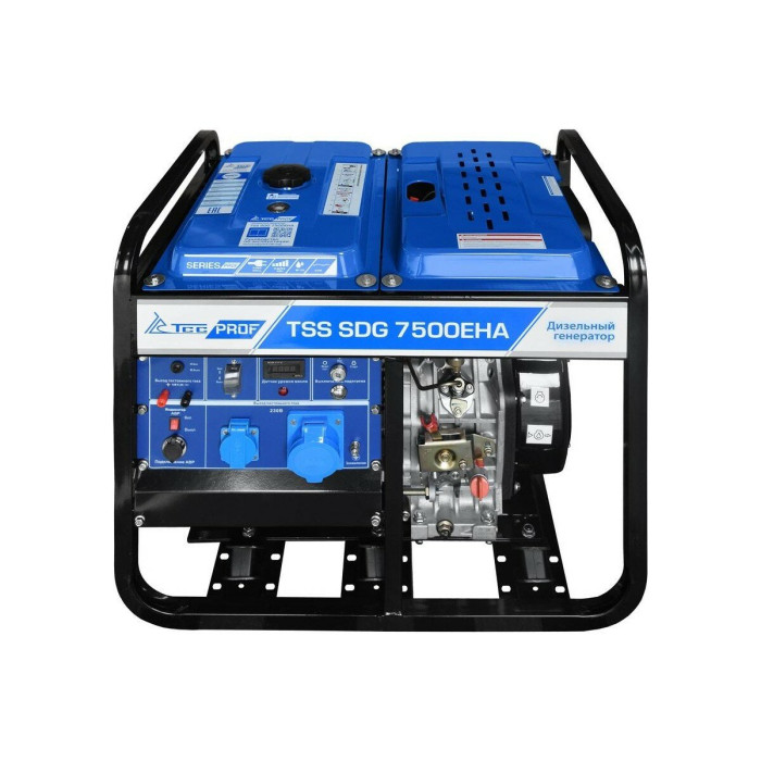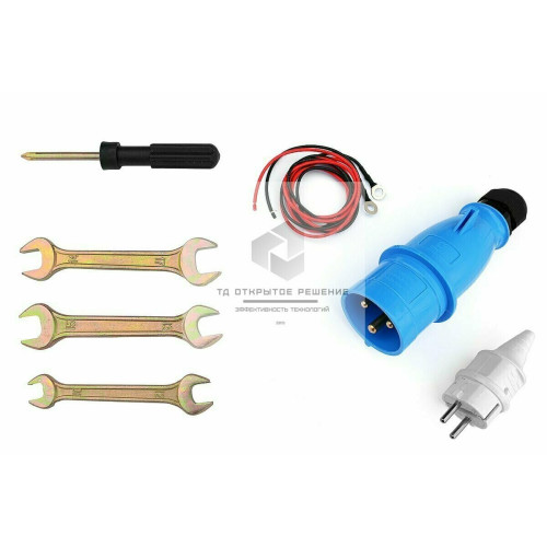 глушитель, Автоматическая стабилизация напряжения, Автоматическое отключение при недостаточном уровне масла, Аккумулятор в комплекте, Датчик уровня масла, Электрическая вилка, разъем для АВР, предпусковой подогреватель, комплект проводов, колёса