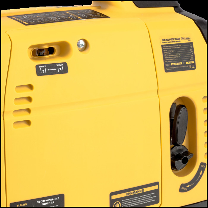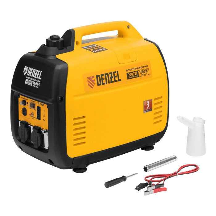 комплект: генератор, комплект инструментов, руководство по эксплуатации с гарантийным талоном; индикатор низкого уровня масла, индикатор перегрузки, индикатор напряжения