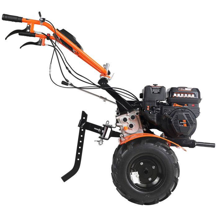 Комплект поставки:Мотоблок - 1шт, Колесо пневматическое - 2шт, Комплект фрез - 1шт, Сошник - 1шт, Держатель сошника - 1шт, Крыло левое - 1шт, Крыло правое - 1шт, Держатель крыльев задний - 2шт, Адаптер передний - 1шт, Инструкция - 1шт