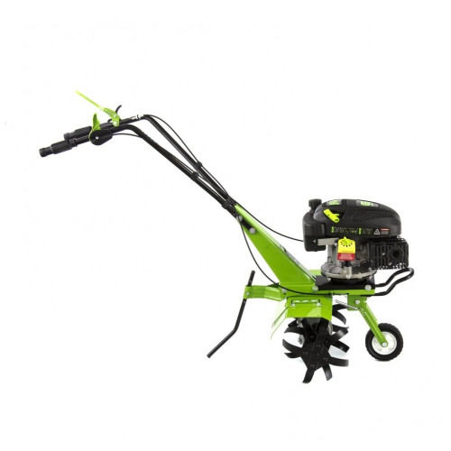Мотокультиватор Сибртех КБС-600 предназначен для выравнивания грунта, создания ровных борозд, разрыхления слежавшейся земли, в том числе не до конца оттаявшей. Бензиновый четырехтактный двигатель мощностью 5 л. с. и 24 почвофрезы из высокопрочной стали позволят продолжительное время обрабатывать даже очень твердую почву, не прикладывая больших усилий. Способен обработать участок более чем 10 соток. Ширина вспашки составляет 60 см, этого достаточно для сложных работ на целине, в поле, для подготовки почвы к посадке картофеля или других сельскохозяйственных культур. В зависимости от типа грунта глубину вспашки можно регулировать с помощью сошника до 25 см.