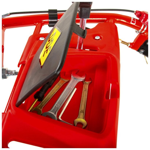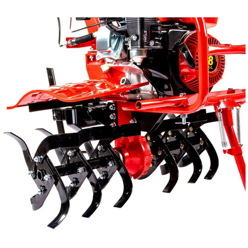 Тип мотоблокКласс среднийМаксимальная ширина обработки 110 смДиаметр фрез 320 ммКоличество фрез в комплекте 8 шт.Тип двигателя бензиновыйОбъем двигателя 210 куб. смМощность двигателя 8 л.с.Коробка передач механическаяТип редуктора шестеренчато-цепнойКоличество передач 2 вперед, 1 назадОбъем топливного бака 3.6 лТип колес пневматическиеРазмер колес высота - 19", ширина - 8"Габариты, ДхШхВ 810х440х760 ммМасса 92 кг