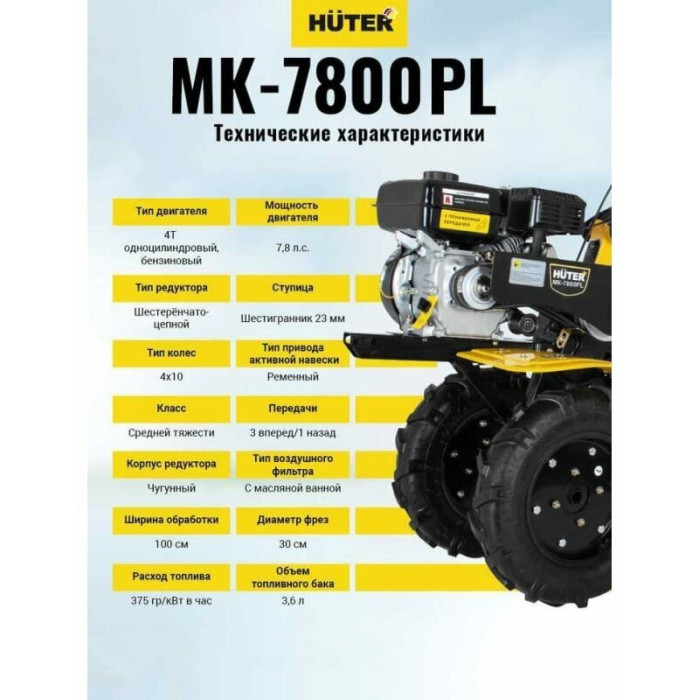 тип двигателя: бензиновый, класс: средний, максимальная ширина обработки: 100 см