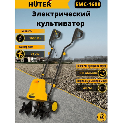 Культиватор электрический HUTER EMC-1600 используется для обработки почвы методом культивации, то есть её рыхления без переворота почвы, выравнивания. С таким агрегатом можно получить хорошие результаты на дачных участках, ограниченных территориях, междурядьях, на клумбах и возле деревьев. Культиватор укомплектован электрическим синхронным щеточным двигателем и работает от обычной сети 220 В. Культиватор электрический HUTER EMC-1600 стал более мощным и поменялся внешний вид.