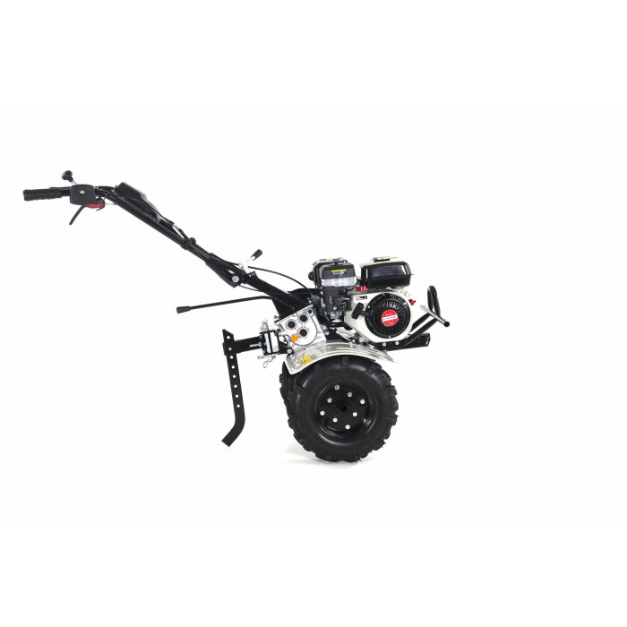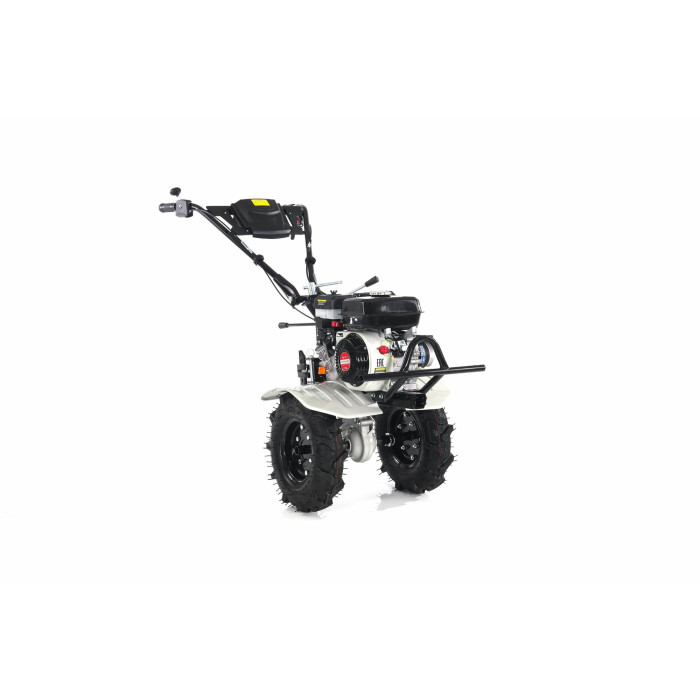 Мотоблок с рулевой колонкой Руль с тросами и рычагами управления Коробка с комплектом для сборки почвенных фрез Грязезащитные щитки, 2 шт. Рычаг регулятора глубины культивации (сошник) Оси колес с фланцами Пневматические колеса, 2 шт. Руководство по эксплуатации Гарантийный талон
