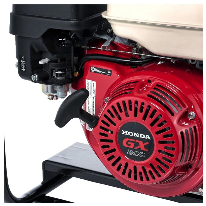 модель двигателя - GX240; допустимый диаметр твердых частиц - 9 мм.; объем масляного бака - 1.1 л.; топливо - автомобильный неэтилированный бензин не ниже АИ-92