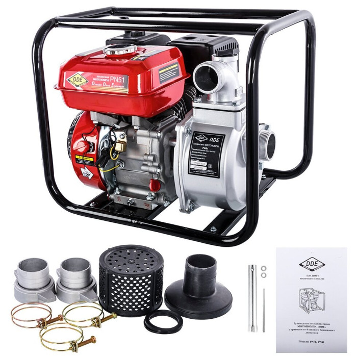 Качество воды: чистая; Максимальная производительность: 417 л/мин; Высота подъема (напор): 30 м; Высота всасывания: 6 м; Диаметр входного отверстия: 50 мм (2''); Диаметр выходного отверстия: 50 мм (2''); Тип двигателя: бензиновый; Объем двигателя: 163 куб.см; Тактность двигателя: 4-х тактный; Мощность: 5 л.с.; Емкость топливного бака: 3.6 л; Самовсасывающая : да; Производитель двигателя: DDE; Ручной стартер: есть; Комплектация: свечной ключ, комплект фильтров и патрубков, инструкция