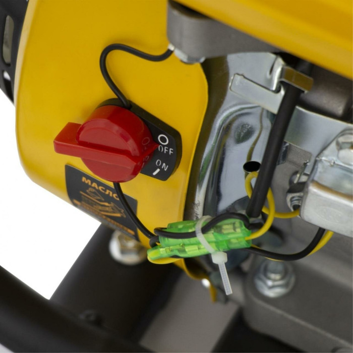уровень звуковой мощности-110 дБ, тип топлива - АИ-92, датчик низкого уровня масла, расход топлива-1,8 л/ч, максимальный размер твёрдых частиц 3 мм., объем масла в картере 0,6 л