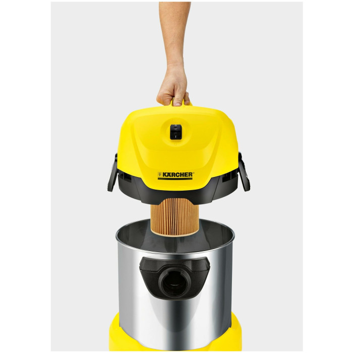 Многофункциональный пылесос WD 3 premium потребляет всего 1000 Вт. Ударопрочный корпус из нержавеющей стали объемом 17 литров. Оснащается картриджным фильтром и подходит для уборки сухой и влажной грязи. Позволяет присоединять насадки непосредственно к всасывающему шлангу. Для легкой уборки в стесненных пространственных условиях.