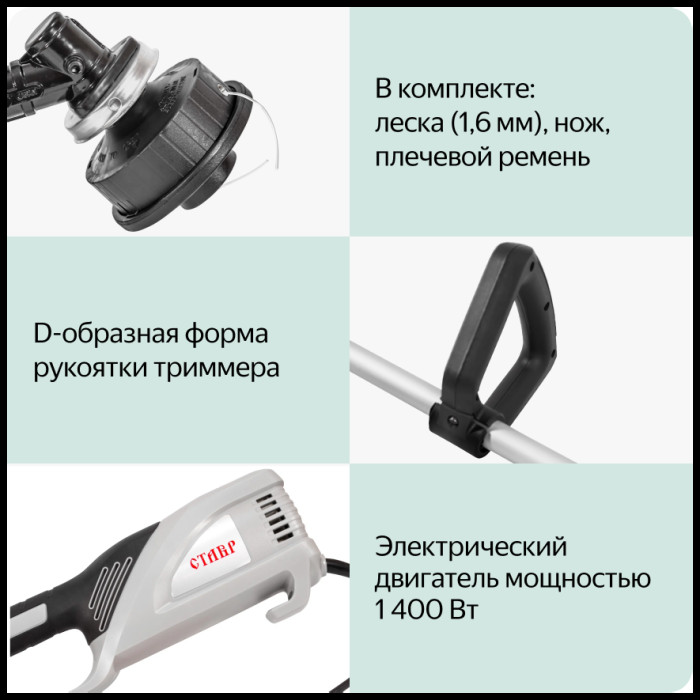 триммер, катушка с леской, нож, ключ шестигранный Г-образный, ключ гаечный 8х10, комплект крепежа, наплечный ремень