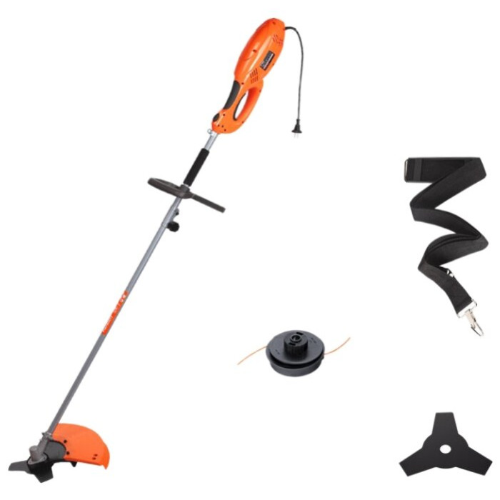разборная штанга; ширина кошения ножом 23 см, диаметр лески - 2.0-2.4 мм; напряжение ~ 220-230 В