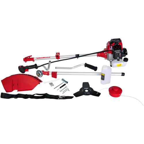 расход топлива: 1.8 л/ч; ширина скашивания ножом: 25 см; скорость вращения лески 8500 об/мин