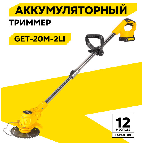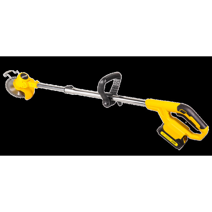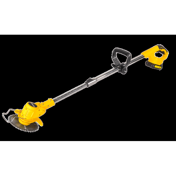 Триммер в сборе – 1 шт; Аккумулятор – 2 шт; Защитный кожух – 1 шт; Крепежный комплект – 1 шт; Инструмент для крепежа – 1 шт; Леска нейлоновая – 5 м; Диск металлический для кошения – 1 шт; Нож нейлоновый для кошения – 5 шт; Нож металлический для кошения – 2 шт; Рукоятка – 2 шт; Руководство по эксплуатации.