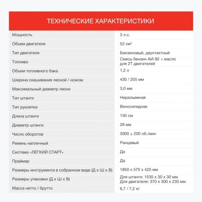 Основные характеристики