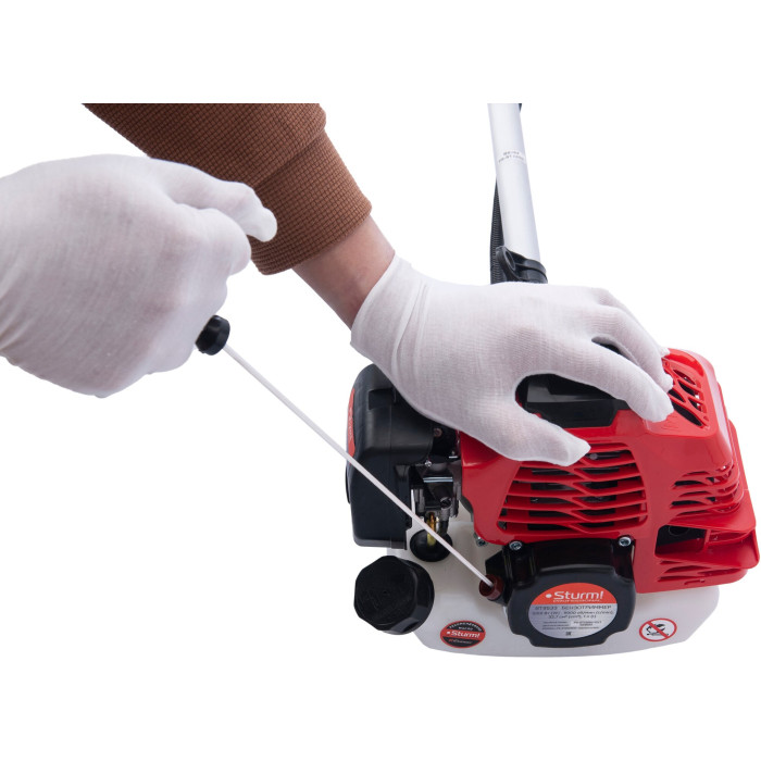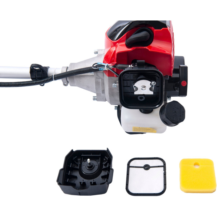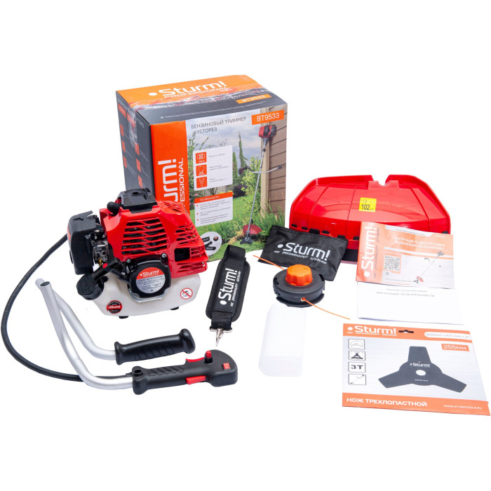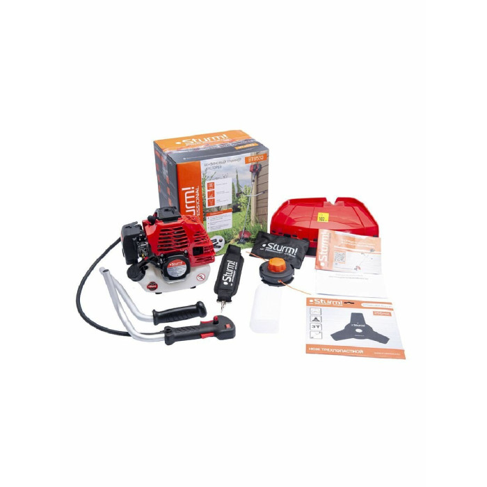 Расширенная: ранцевый наплечный ремень, режущий диск 40 зубьев с напайками, катушка с автоматической заправкой лески, трехлопастной нож