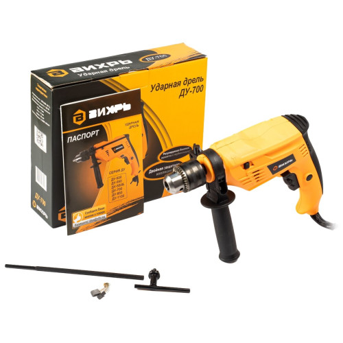 Дрель ударная Вихрь ДУ-700 предназначена для сверления отверстий в различных материалах, завинчивания и выкручивания саморезов, шурупов и винтов, при проведении строительных, отделочных, столярных, слесарных и других работ. Ударный механизм облегчает сверление бетона или кирпичной кладки.