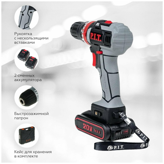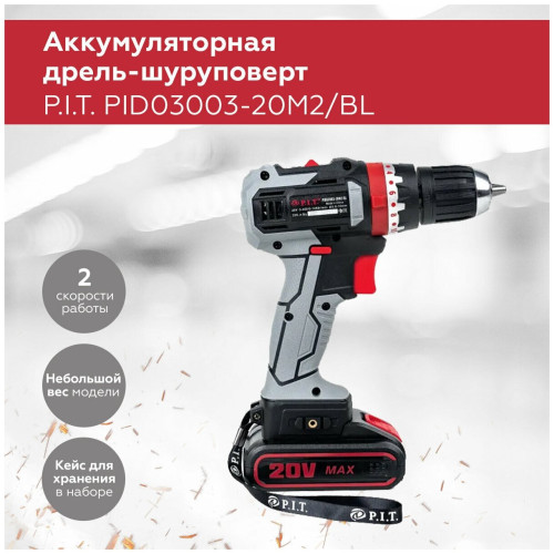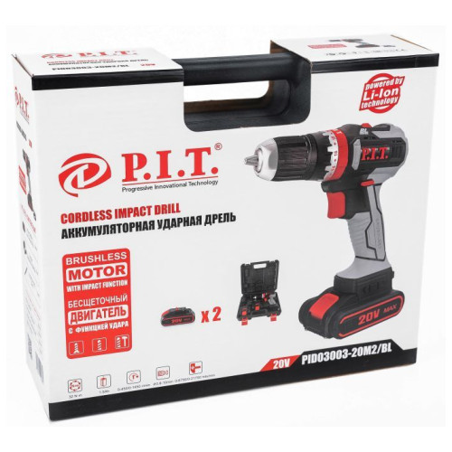Бесщеточная дрель-шуруповерт P.I.T. PID03003-20M2/BL снабжена быстрозажимным патроном, что обеспечивает быструю и удобную замену расходного инструмента.