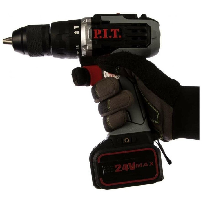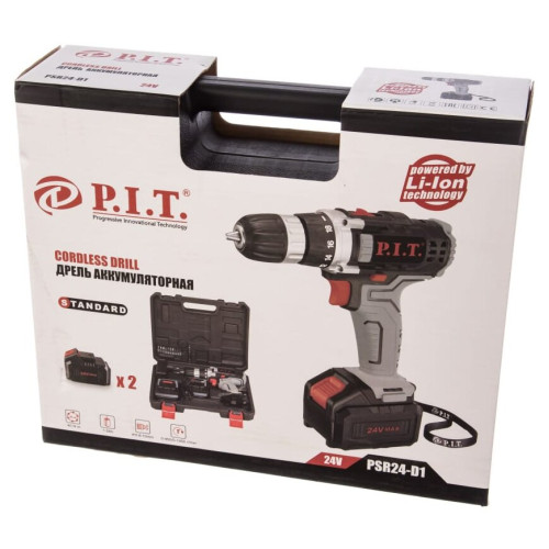 питание: от аккумулятора, напряжение аккумулятора: 24 В, максимальный крутящий момент: 40 Н·м, количество аккумуляторов в комплекте: 2, емкость аккумулятора: 1.50 А·ч, аккумуляторная система: PIT, тип патрона: быстрозажимной, макс. диаметр сверления металл: 10 мм, макс. диаметр сверления дерево: 25 мм, особенности конструкции: блокировка кнопки включения, лампа точечной подсветки, упаковка: кейс, вес: 2.61 кг, тип аккумулятора: Li-Ion, количество скоростей работы: 2, тип: дрель-шуруповерт