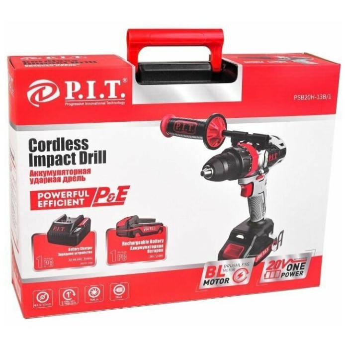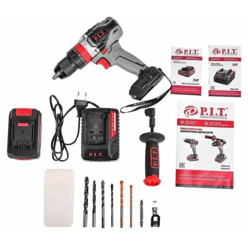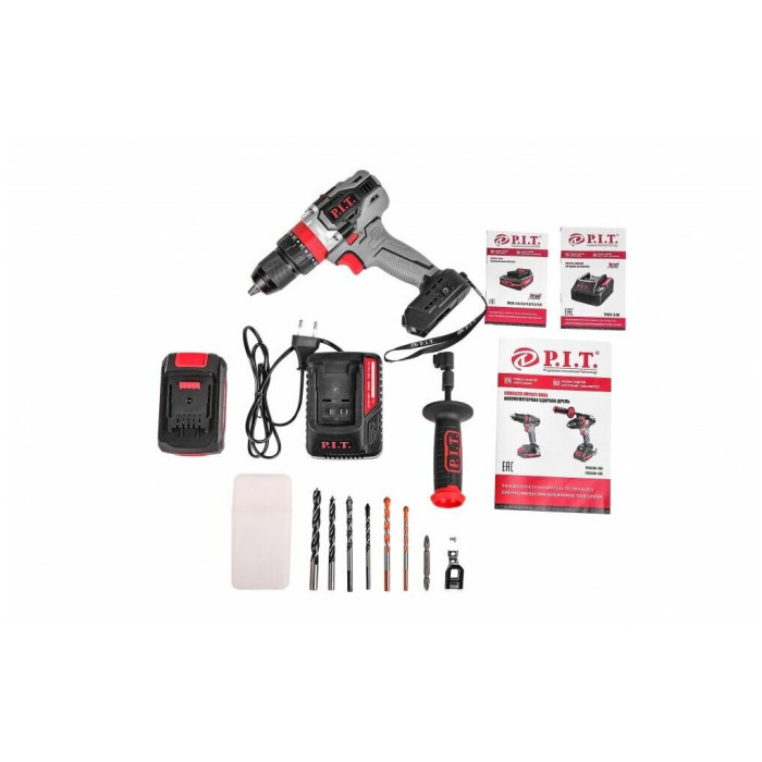 Дрель-шуруповерт; Аккумулятор; Зарядное устройство; Набор бит; Дополнительная рукоятка; Кейс