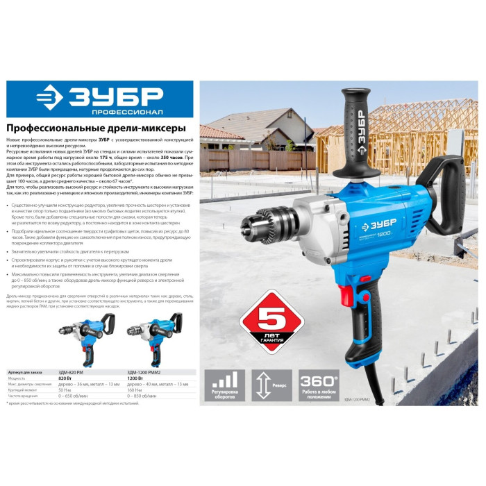 Лидер по соотношению мощность/удобство при сверлении отверстий в различных материалах, а также перемешивании жидких растворов ЛКМ. Профессиональный инструмент, каким он должен быть: крепкий, надежный и удобный в работе ЗУБР - сделано для ВасТехнические характеристики:Тип инструмента: дрельмиксер