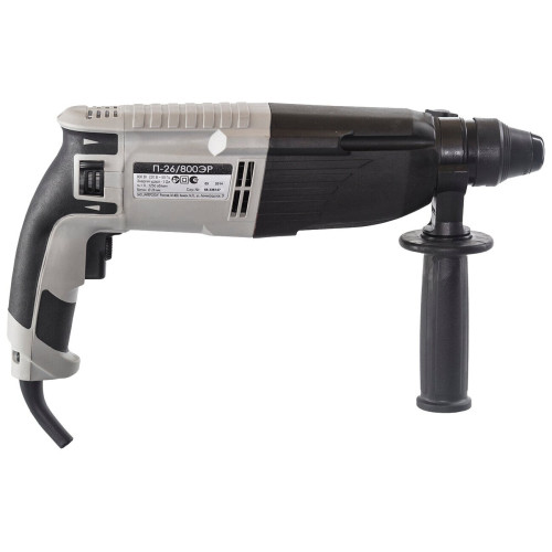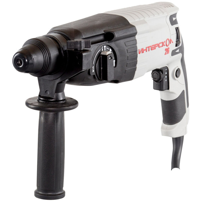 Трехрежимный сетевой перфоратор класса SDS plus ИНТЕРСКОЛ П-26/800ЭР – аппарат, применяемый в строительстве для сверления и пробивая отверстий и небольших отбойных работ для бытового и профессионального использования. Скорость работы устройства зависит от степени нажатия на пусковую кнопку. Максимальная энергия удара составляет 3 Дж, что позволяет пробивать бетонные стены без особого труда. Число оборотов - от 0 до 1250 в минуту. Три режима – бурение, сверление и отбойные