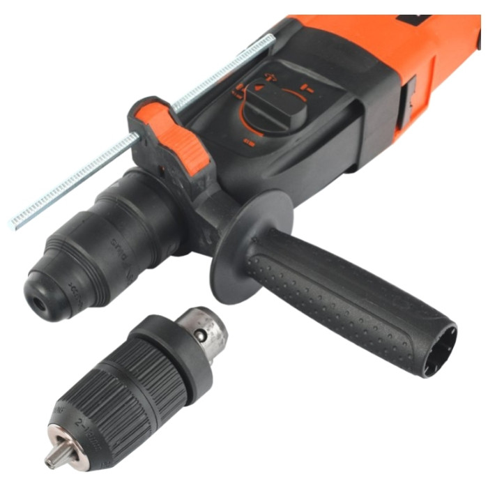 боковая рукоятка, ограничитель глубины сверления, быстрозажимной патрон, кейс
