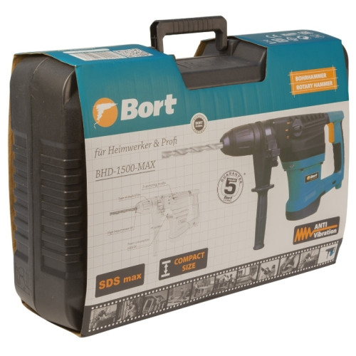 бур SDS max, долото пикообразное, дополнительная рукоятка, смазка, ограничитель глубины сверления, ключ, кейс