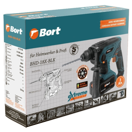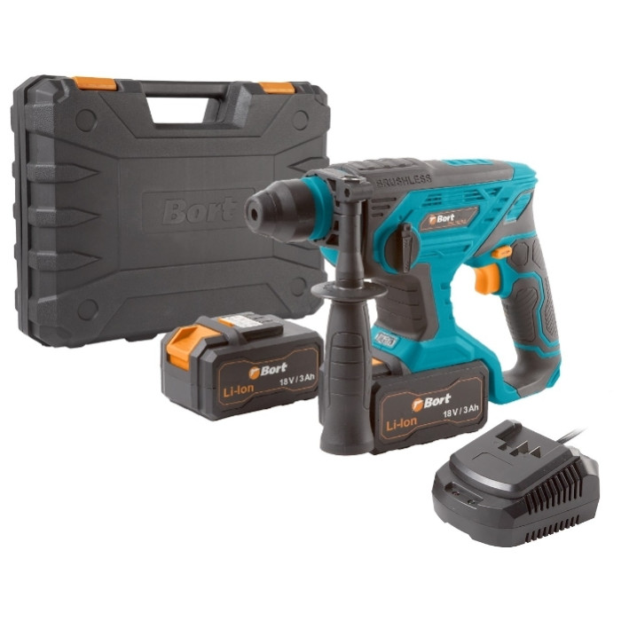 два аккумулятора, зарядное устройство, дополнительная рукоятка, ограничитель глубины сверления, кейс