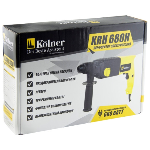 дополнительная рукоятка, дополнительный комплект угольных щеток, ограничитель глубины сверления, блокировка кнопки включения, упаковка смазки в комплекте