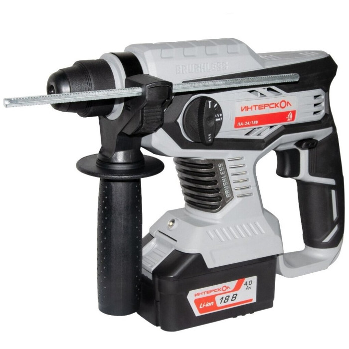 перфоратор ПА-24/18В, аккумулятор, зарядное устройство, дополнительная рукоятка, ограничитель глубины сверления, кейс