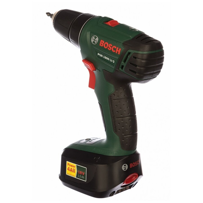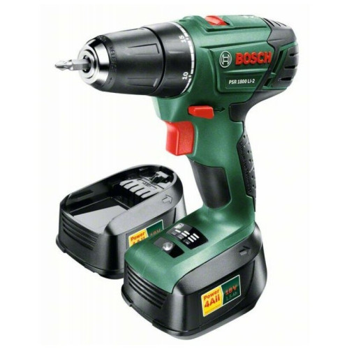 Аккумуляторная дрель-шуруповерт Bosch PSR 1800 LI-2 0.603.9A3.121 имеет встроенную подсветку, что позволяет работать при плохом освещении. Двухскоростной редуктор упрощает ведение различных работ: первая скорость предназначена для заворачивания шурупов, вторая - для сверления. С помощью тумблера на корпусе можно выбрать одну из них. Прорезиненная рукоятка способствует комфортному удержанию инструмента. Чемодан решает вопрос хранения и транспортировки. Данная модель поставляется с двумя аккумуляторами.