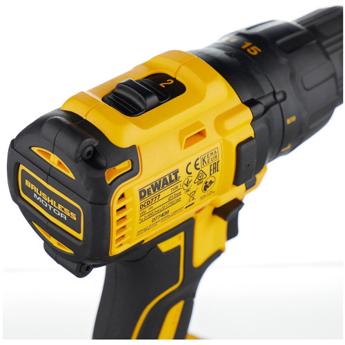 Купить шуруповёрт DCD777D2T-QW – отличное решение, если вам нужен инструмент с высокой производительностью без перегрева, что возможно благодаря отсутствию трения щеточного узла. Дрель-шуруповерт работает на износостойком бесщеточном двигателе Brushless с двухскоростной системой. Легко и просто сменить биту благодаря 13-миллиметровому зажимному патрону и шпинделю. Для максимального контроля скорость регулируется через триггер и реверс. Инструмент оснащен 16-позиционным регулятором крутящего момента. Яркий белый светодиод выполняет функцию задержки для улучшения видимости. Кроме этого, доступен режим фонаря. комплектация: 2 аккумулятора (2,0 Ач), зарядное устройство, чемодан TSTAK.