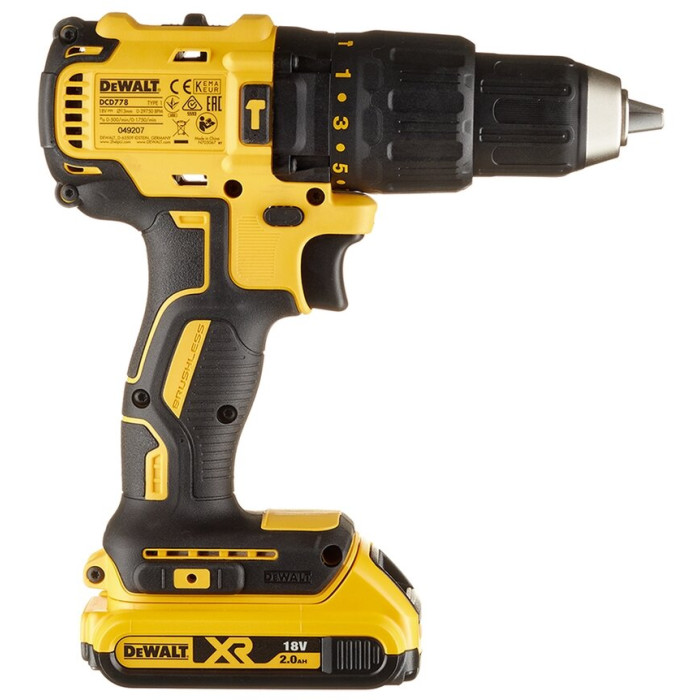 Ударная дрель-шуруповерт DCD778D2T - инструмент, справляющийся с разнообразными задачами в местах без доступа к сети. С её помощью можно производить сверление отверстий в металлических, бетонных или деревянных заготовках, а также закручивание и выкручивание саморезов и другие работы с крепежом. Инструмент оснащен быстрозажимным патроном, что существенно сокращает время пользователя на замену оснастки. Два аккумулятора в комплекте обеспечивают длительную непрерывную работу без надобности остановки для подзаряда. Удобный кейс обеспечивает комфорт хранения и транспортировки инструмента.