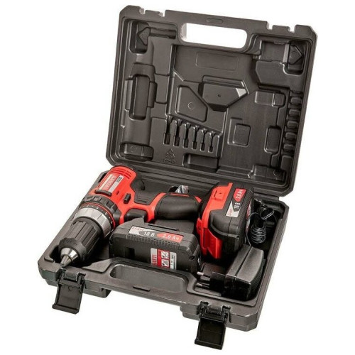 питание: от аккумулятора, напряжение аккумулятора: 18 В, максимальный крутящий момент: 36 Н·м, количество аккумуляторов в комплекте: 2, емкость аккумулятора: 2 А·ч, тип патрона: быстрозажимной, макс. диаметр сверления металл: 13 мм, макс. диаметр сверления дерево: 32 мм, особенности конструкции: фиксация шпинделя, блокировка кнопки включения, лампа точечной подсветки, упаковка: кейс, вес: 1.42 кг, тип аккумулятора: Li-Ion, количество скоростей работы: 2, тип: дрель-шуруповерт
