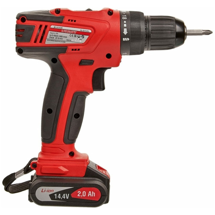 питание: от аккумулятора, напряжение аккумулятора: 14.4 В, максимальный крутящий момент: 32 Н·м, количество аккумуляторов в комплекте: 2, емкость аккумулятора: 2 А·ч, тип патрона: быстрозажимной, макс. диаметр сверления металл: 10 мм, макс. диаметр сверления дерево: 25 мм, особенности конструкции: фиксация шпинделя, блокировка кнопки включения, лампа точечной подсветки, упаковка: кейс, вес: 1.28 кг, тип аккумулятора: Li-Ion, количество скоростей работы: 2, тип: дрель-шуруповерт