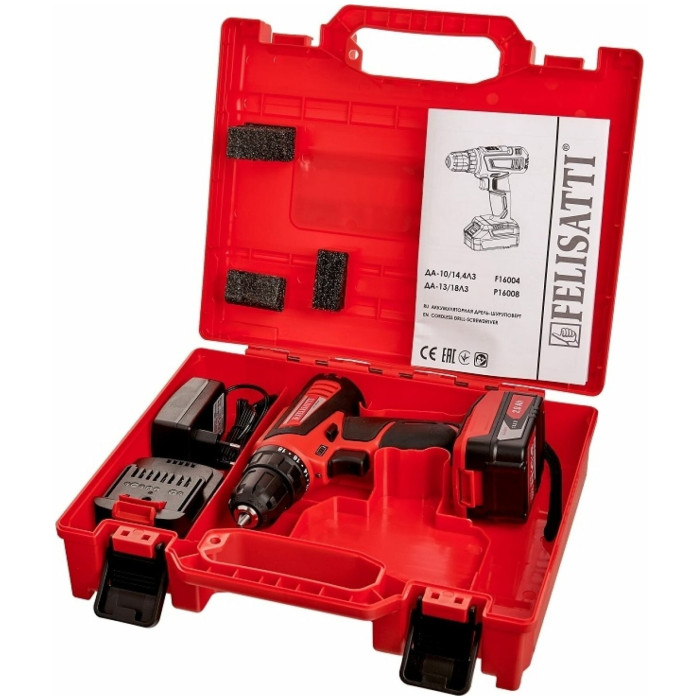дрель-шуруповерт, аккумулятор (2 шт.), зарядное устройство, кейс