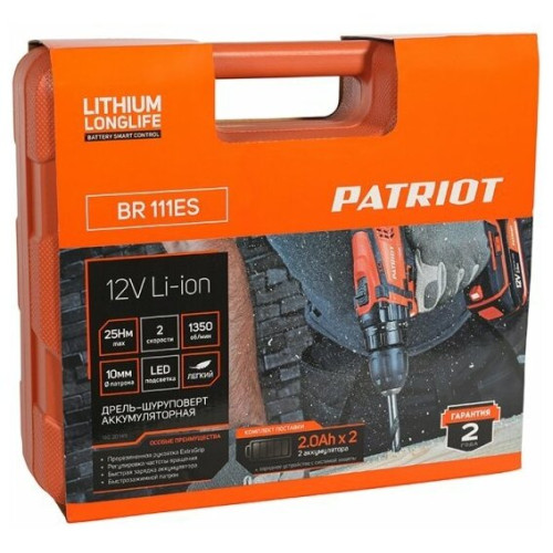 BR 111ES - представитель новой линейки аккумуляторных шуруповёртов Patriot. Данный шуруповёрт оснащён одномуфтовым патроном с большим усилием зажима. Большую площадь освещаемой поверхности обеспечивают 2 светодиода, расположенных на корпусе шуруповёрта, нижний светодиод направлен на область под патроном, обеспечивая лучшую видимость. Увеличенная аккумуляторная батарея с противоскользящим покрытием повышает устойчивость BR 111ES
