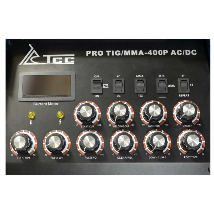 режим импульсной сварки; двухтактный и четырехтактный режим; регулировка времени продувки газом после сварки; регулировка времени нарастания и спада тока; возможность дополнительного подключения устройства дистанционного управления