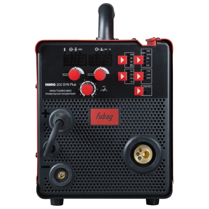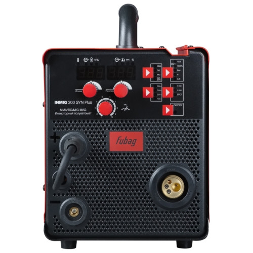 микропроцессорное управление в режиме MIG; регулировка горячего старта в режиме MIG; регулировка точечной сварки в режиме MIG: регулировки: процента, тока зажигания, времени удержания тока зажигания, мощности дуги, времени подачи газа перед и после сварки, времени точечной сварки, времени обратного горения