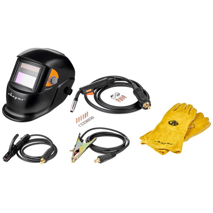горелка в сборе, клемма заземления в сборе, маска, краги, комплект ЗИП, руководство по эксплуатации