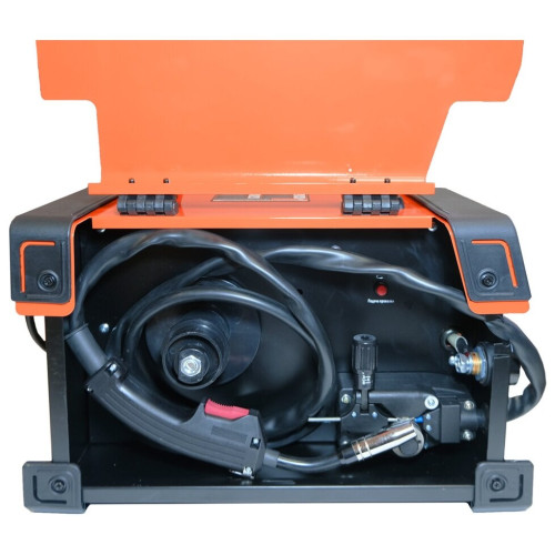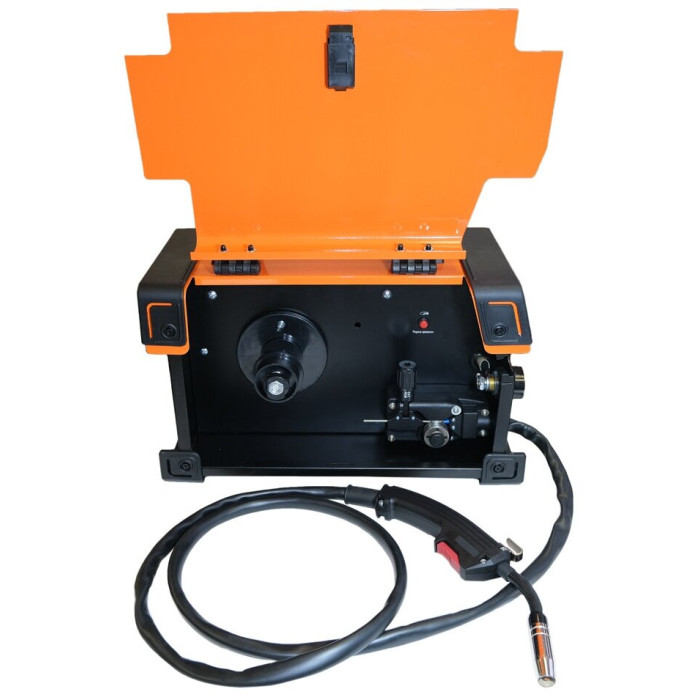 Сварочный аппарат со встроенной горелкой; Обратный силовой кабель с зажимом (струбциной); Катушка с порошковой (флюсовой) проволокой; Инструкция-Паспорт