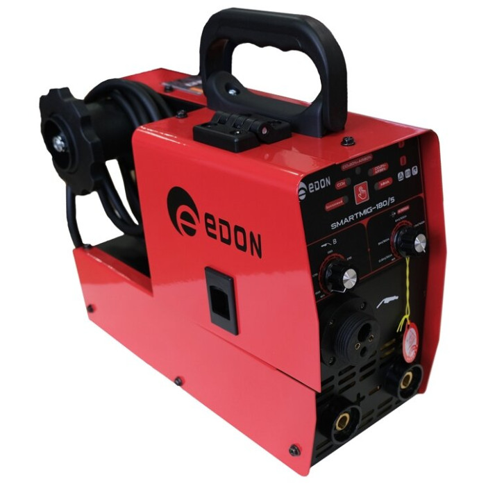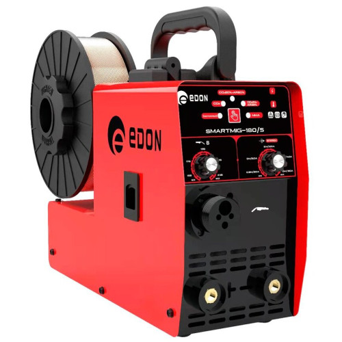 Современный цифровой сварочный аппарат полуавтоматической сварки, ручной дуговой сварки штучным электродом с покрытием Edon Smart MIG-180/5 бытового применения. Особенности: умный контроллер режимов сварки; стабильная работа от 195 до 245 В; работа с проволокой от 0,8 до 1,0 мм.; бобины от 100 до 200 мм., весом 0,5 - 5 кг; сварка тонких металлов и нержавеющей стали; защита от перегрева и короткого замыкания; многослойное лаковое покрытие электронных компонентов; сварка в среде защитных газов и безгазовая сварка порошковой проволокой.
