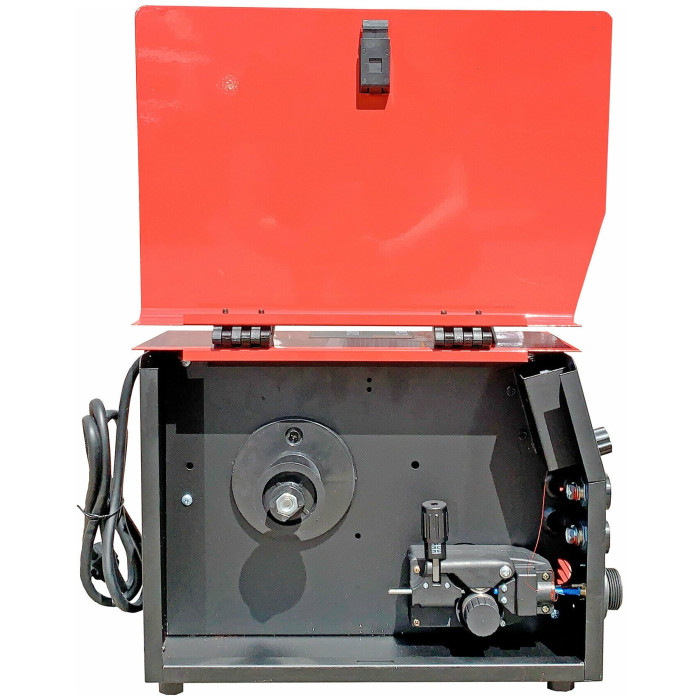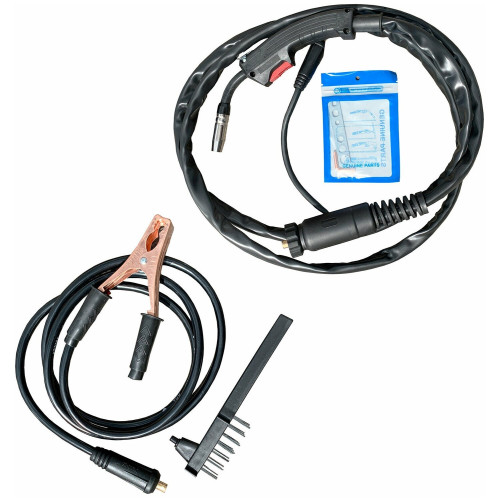 Сварочный полуавтомат, съёмный рукав MIG, силовой провод с зажимом, ключ накидной, наконечник - 2шт, щетка-молоток, шланг для подключения газа, руководство по эксплуатации.