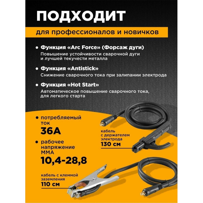 кабель с электрододержателем; кабель с клеммой заземления; инструкция